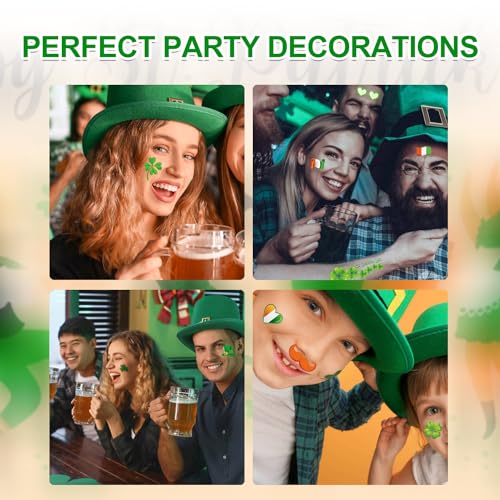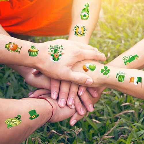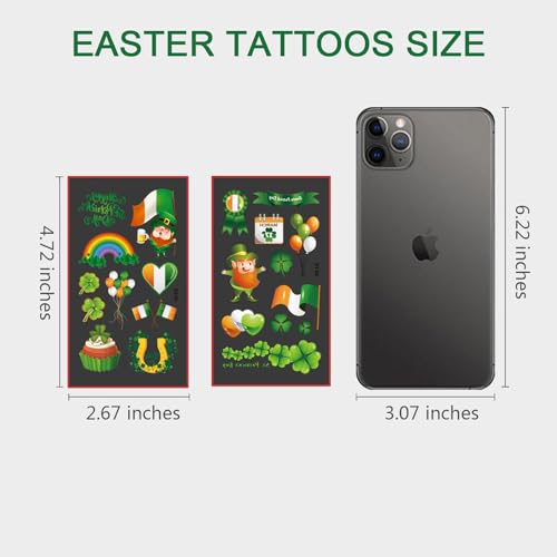 WATERPROOF AND DURABLE: St.patricks day shamrock tattoos made of high quality material, the fake tattoo stickers are Safe for Skin, waterproof, realistic, long lasting 3-9 day, removable, and with vivid patterns. Non-toxic, harmless & tasteless, the tattoos don’t cause irritation.