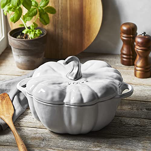 STAUB Cast Iron Dutch Oven 3.5-qt Pumpkin Cocotte with Stainless Steel Knob, Made in France, Serves 3-4, White