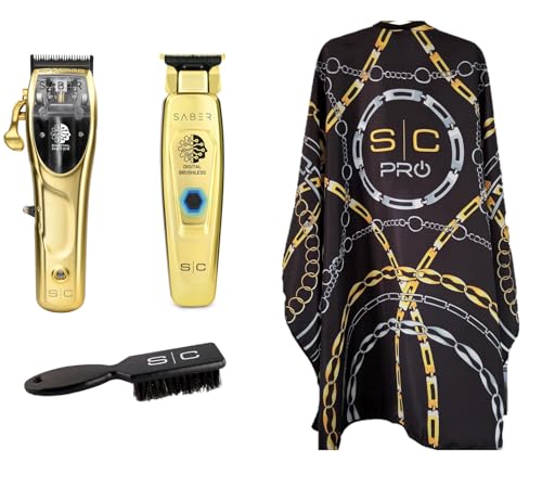 Stylecraft Saber Hair Clipper and Trimmer Bundle Deal with Professional Barber Hair Cutting Cape and Brush