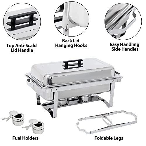 SUPER DEAL Newest 4 Pack 8QT Food Warmer, Rectangular Chafing Dish Buffet Set w/Foldable Frame Legs, Stainless Steel Full Size Chafer Dish for Parties