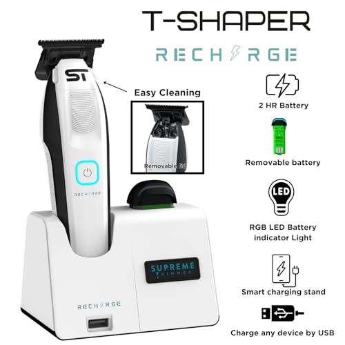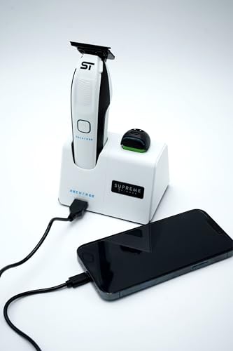 Specification: Supreme Trimmer Recharge Zero Gap Trimmer for Barbers | 7500+ RPM, Removable Battery, Smart USB Charging Stand + iPhone/Android Charging | ST777 White
