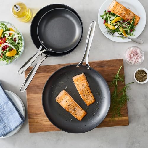Fry eggs, cook meats and more with this durable nonstick skillet. Made with heavy-gauge hard anodized aluminum, this skillet is lightweight and prevents hot spots, so you can sear foods at high temperatures without worrying about uneven results. The riveted handle is secure, so you can maneuver this skillet with ease. We took our favorite things about the best French cookware and made them even better. Our Signature line of cookware is filled with chef-inspired details, like gently curved sides and rounded edges to help you achieve amazing results.