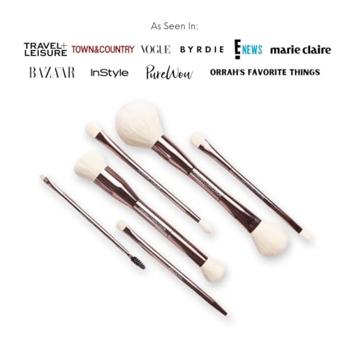 Specification: Sustainable Luxury 6 Dual-Ended Makeup Brush Set with Travel Case for a full-face application, Professional Makeup Brushes Set, Cream & Powder Complexion, Conceal/Define, Brow/Line, Crease/Eye Detail