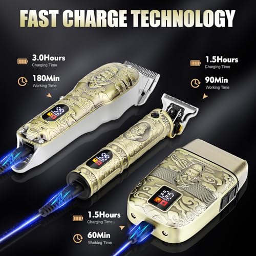 Smart LCD Display & Long Battery Life: Clipper and trimmer and shaver are equipped with digital display shows the remaining charge level as well as charging status and lubrication reminder indicators. The hair cutting kit built-in rechargeable battery provides cordless operation for up to 180 minutes after 3 hours of charging.