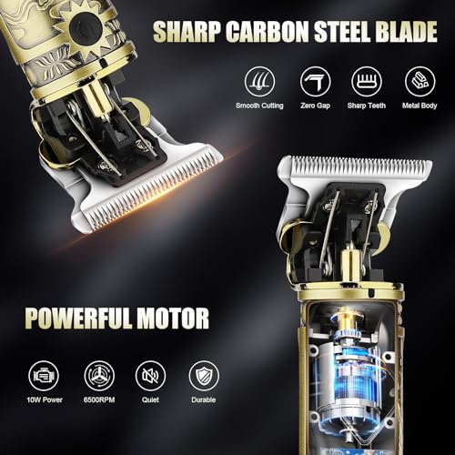 High Carbon Steel & Self-Sharpening Blades: This cordless clippers for men adopt precision high carbon steel blade, which can maintain long-term sharpness without pulling the hair. The teeth on the blade are tightly line up with each other to remove hair with no snagging.T- blade can perfectly achieve zero gapped trimming without pulling.