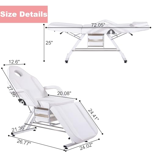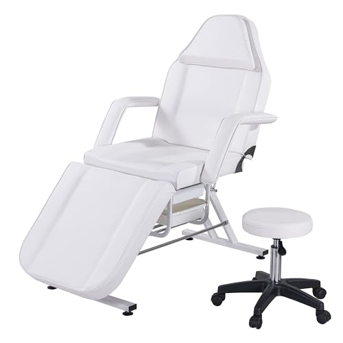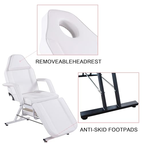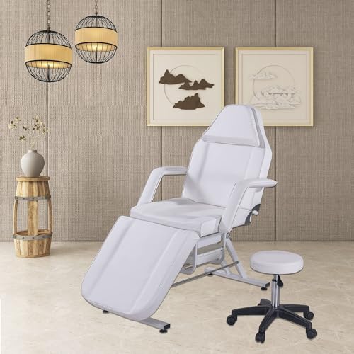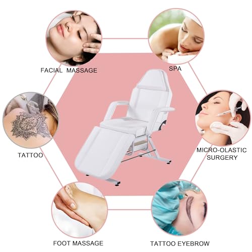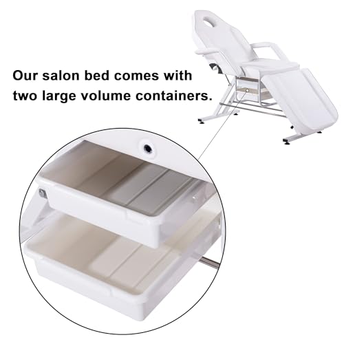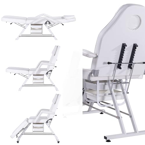 Specification: Tattoo Chair Massage Salon with Two Trays, Esthetician Bed with Hydraulic Stool,Multi-Purpose 3-Section Facial Bed Table, Adjustable Beauty Barber Spa Beauty Equipment White