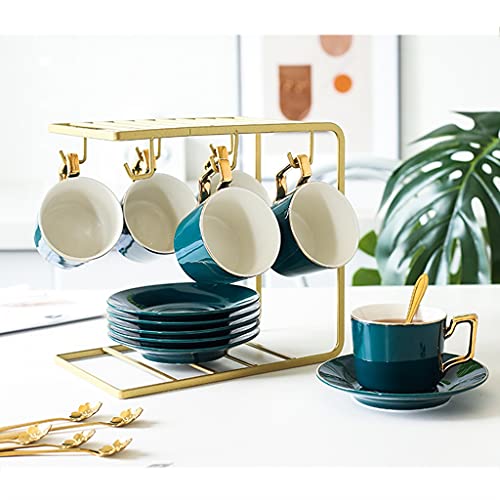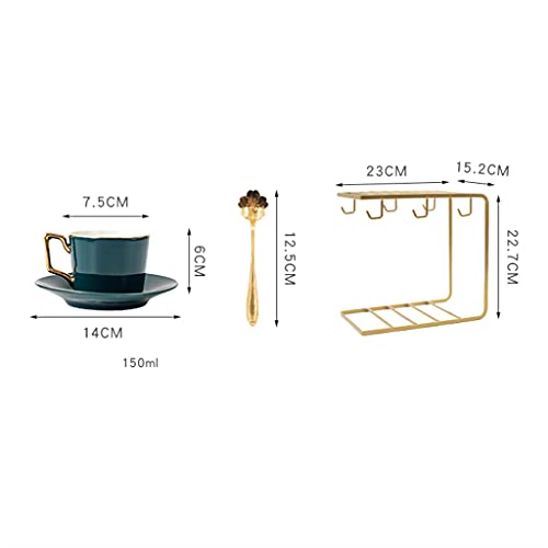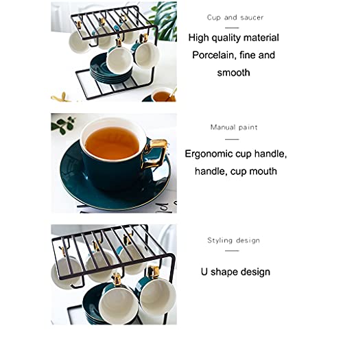 Specification: Tea Cup Set Porcelain Tea Cups Set Green Coffee Cups with Saucers Spoon European Style Cup with Rack (Black 6 pcs) (Gold 6 pcs)