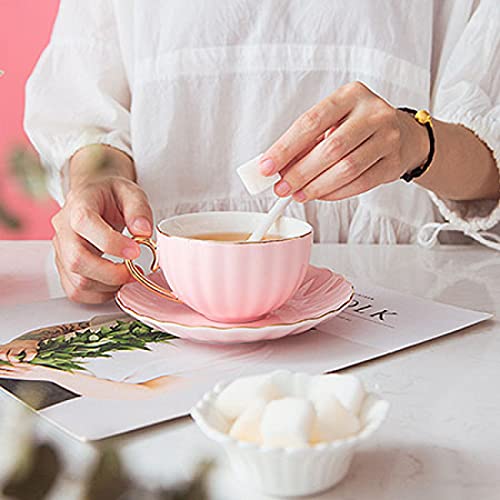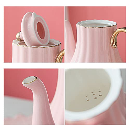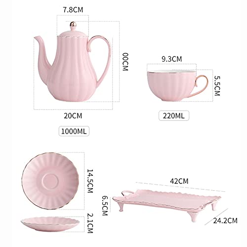 Tea Set Porcelain Tea Sets Coffee Cup and Saucer Set Pink Coffee Cups with Tray for Women Girls,Pink