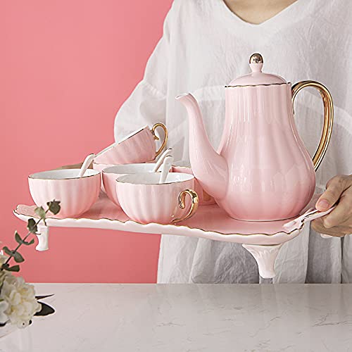 Specification: Tea Set Porcelain Tea Sets Coffee Cup and Saucer Set Pink Coffee Cups with Tray for Women Girls,Pink