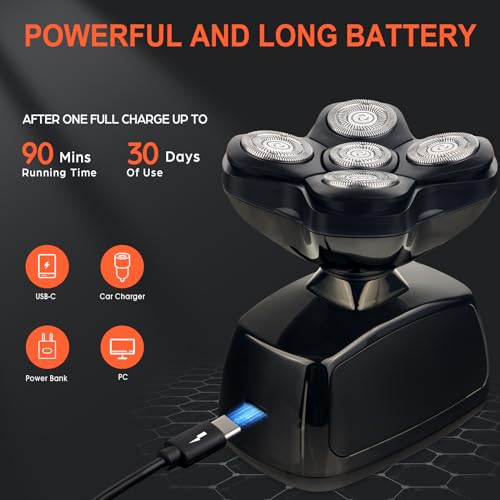IPX7 Waterproof and Wet & Dry – Men’s head shavers are IPX7 waterproof throughout, providing you with a comfortable dry shave or a refreshing wet shave with shaving foam, 100% waterproof all over, safe to use in the shower under running water, enjoy shaving in the shower, and equally perfect whether you use the gel/foam wet or dry shave. The removable and washable head allows you to easily clean directly under the tap.