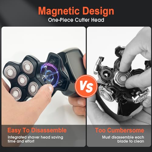 Telfun Upgraded 7-in-1 Head Shavers for Bald Men, 100% Waterproof Grooming Kit, Wireless Charging Pad, Wet/Dry Shaving, Mess-Free Hair Capture, Easy Use Palm Shaver for a Smooth Bald Shave