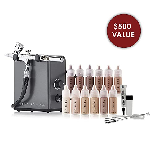 TEMPTU Pro Plus Premier Airbrush Kit: Airbrush Makeup Set for Professionals | Includes S/B Silicone-Based Foundation Starter Set & Airbrush Cleaning Kit | Travel Friendly