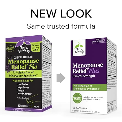Specification: Terry Naturally Menopause Relief Plus – 60 Capsules, Pack of 2 – Clinical-Strength Formula with Rhodiola & Black Cohosh – Non-GMO, Vegan, Gluten Free – 60 Total Servings