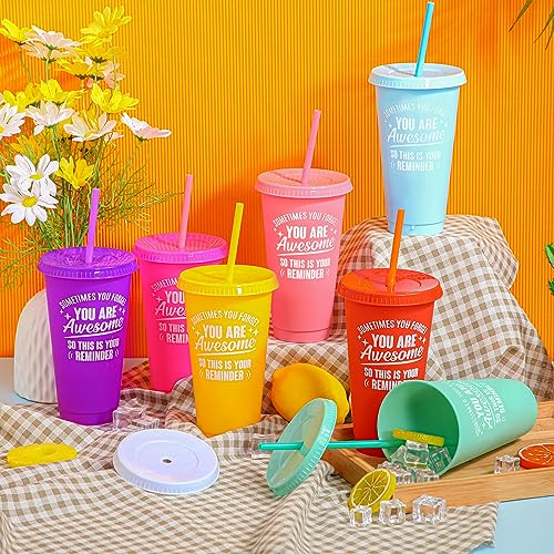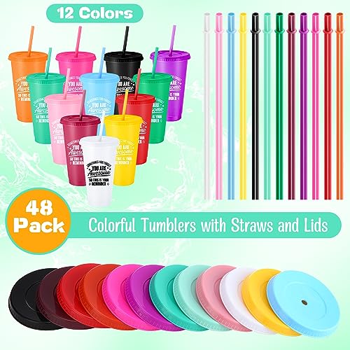 Thank You Gifts You Are Awesome Coffee Mug 24 oz Plastic Tumblers with Lids and Straw Inspirational Reusable Tumblers Appreciation Gift for Coworker Teacher Colleague Employee (48 Pack)