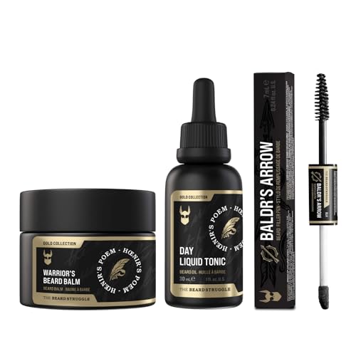 The Beard Struggle Black Beard Pen Filler, Day Liquid Tonic Beard Oil & Warrior’s Beard Balm Bundle Promotes Thicker Beard Look & Helps to Soften Beard – Gold Collection, Hoenir’s Poem