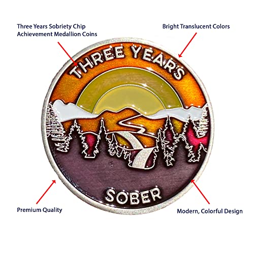 Specification: Three Year Sober Chip | 3 Years Sobriety Token | Non-AA, Non-Religious Medal, for Men and Women Celebrating Sobriety