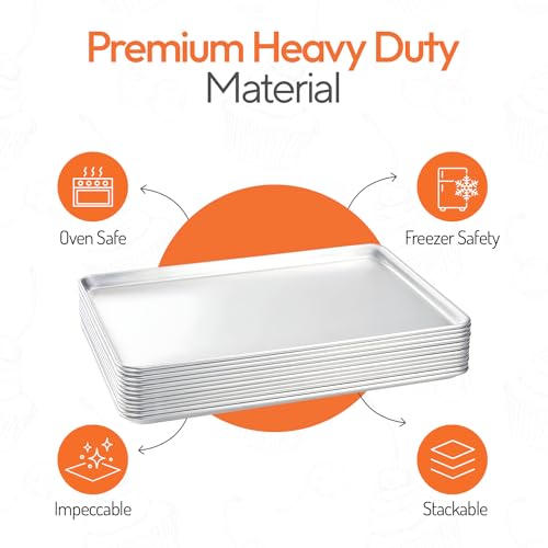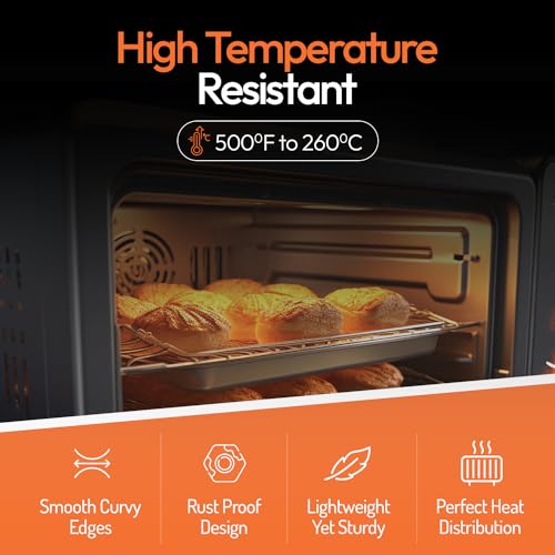 COMMERCIAL QUALITY: Made of durable 19 Gauge aluminum, these professional-weight baking sheet pan features a wire reinforced beaded rim and is heavier in gauge than that of standard home bake ware. The full-size sheet pan is 26 x 18 inches (66×46 cm), Measure to see if it fits your home oven!