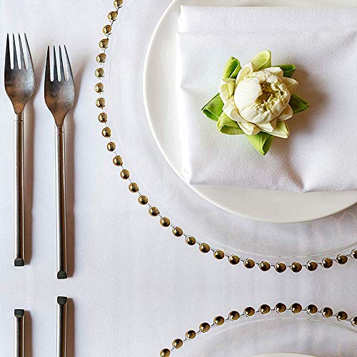 Tiger Chef Glass Chargers for Dinner Plates – Round Charger Plates Gold Beaded – Plate Chargers Wedding Décor Placemats Set of 12