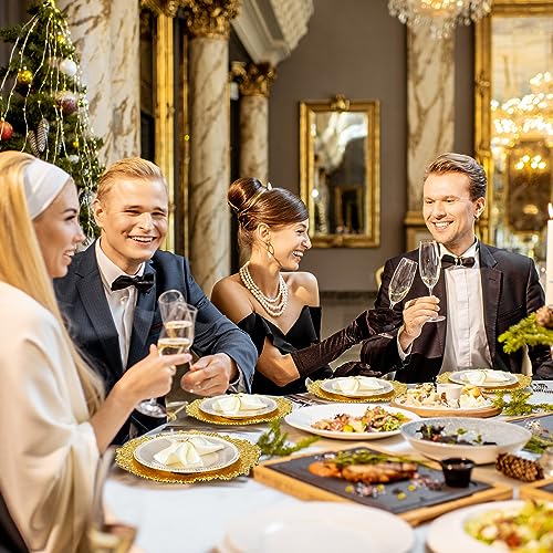 Reliable Quality: this round charger plates are made of reliable materials, reliable plastic double sided electroplated gold, exquisite appearance and reliable, high stability, can be applied for a long time, safe materials make you safer and more assured