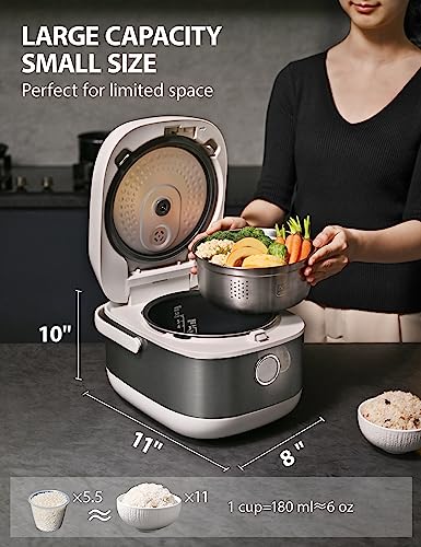 TOSHIBA Rice Cooker Induction Heating, with Low Carb Rice Cooker Steamer 5.5 Cups Uncooked – Japanese Rice Cooker, 8 Cooking Functions, 24-Hr Timer and Auto Keep Warm, White
