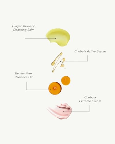 SET INCLUDES: Ginger Turmeric Cleansing Balm (30ml), Chebula Active Serum (30ml), Renew Pure Radiance Oil (15ml) Chebula Extreme Cream (30ml) + Golden Sand Vanity Travel Case.