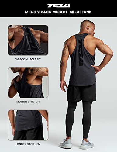 TSLA 3 Pack Men’s Dry Fit Y-Back Muscle Workout Tank Tops, Athletic Training Gym Tank Top, Sleeveless Bodybuilding Shirts