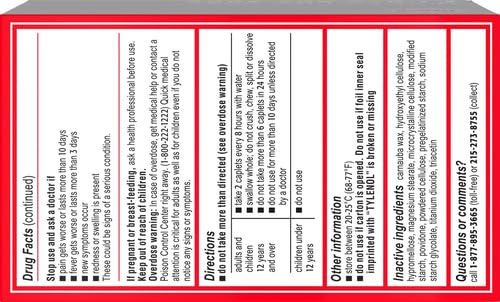 Specification: Tylenol 8 Hour Muscle Aches & Pain Acetaminophen Tablets for Muscle & Joint Pain, 100 ct