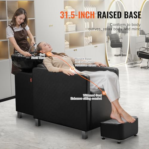 VEVOR Shampoo Backwash Chair, 661.4LBS Loading Salon & Spa Hair Washing Station, Backwash Barber Shampoo Bowl and Chair, Beauty Spa Massage Hairdressing Equipment with Wide Footrest and Ceramic Bowl