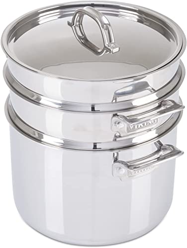 Specification: Viking Culinary 3-Ply Stainless Steel Pasta Pot, 8 Quart, Includes Pasta & Steamer Insert, Dishwasher, Oven Safe, Works on All Cooktops including Induction