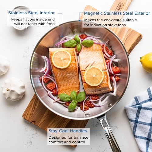 Specification: VIKING Culinary Professional 5-Ply Stainless Steel Fry Pan, 12 Inch, Includes Lid, Dishwasher, Oven Safe, Works on All Cooktops including Induction, Satin Finish