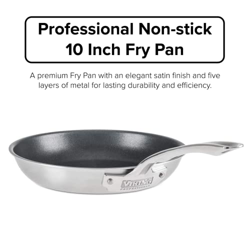 VIKING Culinary Professional 5-Ply Stainless Steel Nonstick Fry Pan, 10 Inch, Ergonomic Stay-Cool Handle, Dishwasher, Oven Safe, Works on All Cooktops including Induction