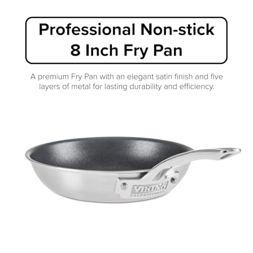 VIKING Culinary Professional 5-Ply Stainless Steel Nonstick Fry Pan, 8 Inch, Ergonomic Stay-Cool Handle, Dishwasher, Oven Safe, Works on All Cooktops including Induction