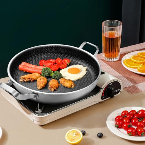 Vinchef Skillet with Lid 13 Inch Stainless Steel Pan, PFOA Free, Dishwasher and Oven Safe Cookware, Cooking Pan for Induction Compatible