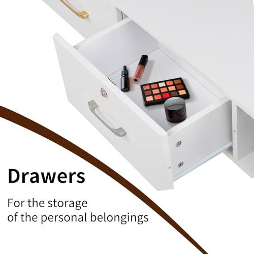 Specification: Wall Mount Barber Salon Station White Makeup Storage Organizer Hair Styling Beauty Spa Equipment Utility Set with 3 Appliance Holders, 2 Lockable Drawers