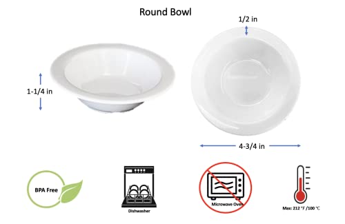 100% Melamine made in Malaysia Item # US 303 (4-3/4″ dia. X 1-1/4″ H, Capacity: 4-Ounce), Color: White or Tan, Dishwasher Safe Break Resistant Compatible with NS304. This size of Bowl is perfect for Salad, Cereal, Soup and Fruit use. 100% Melamine, Food Safe and BPA Free. Safe for temperatures up to 212 degree F / 100 degree C, but NOT recommend for conventional oven or microwave oven use.