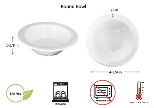100% Melamine made in Malaysia Item # US 304 (4-3/4″ dia. X 1-5/8″ H, Capacity: 5-Ounce), Color: White or Tan, Dishwasher Safe Break Resistant Compatible with NS304. This size of Bowl is perfect for Salad, Cereal, Soup and Fruit use. 100% Melamine, Food Safe and BPA Free. Safe for temperatures up to 212 degree F / 100 degree C, but NOT recommend for conventional oven or microwave oven use.