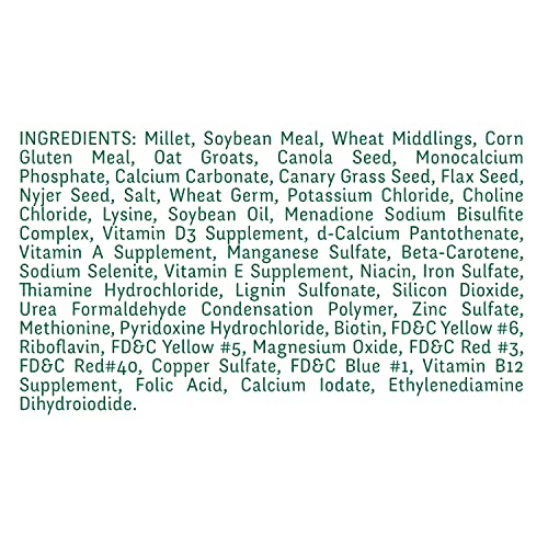 IRRESISTIBLE BLEND: Contains premium seeds small birds love, such as millet, canola seed, canary grass seed, flax seed and Nyjer seed.