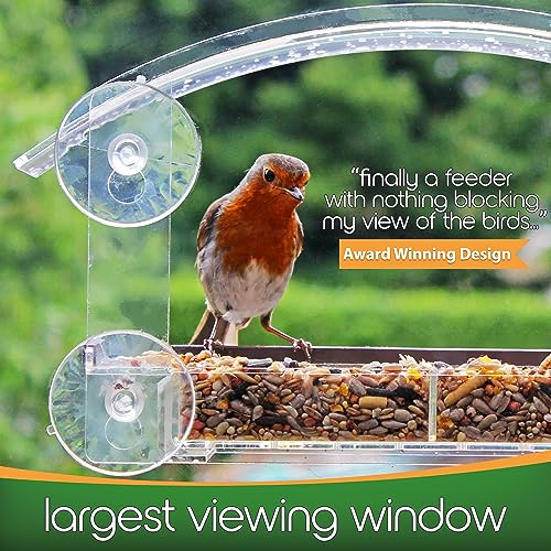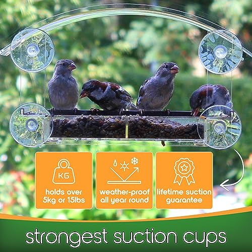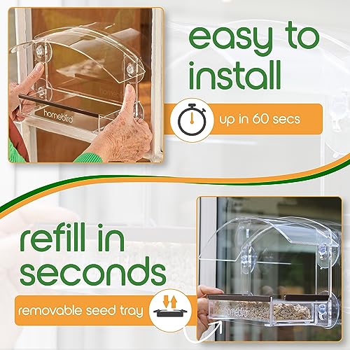 ✅ REFILL IN SECONDS WITH REMOVABLE TRAY – to easily re-fill and clean. A fantastic window bird house, bird feeders window, window bird feeders with strong suction cups or suction cup bird feeder window.