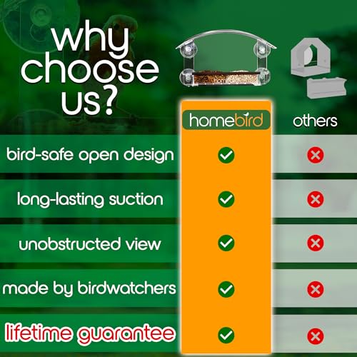 ✅ A TIKTOK VIRAL SENSATION – with over 100,000 bird feeders sold globally. A window bird feeder inside house will attract all different species to your window! Have complete peace-of-mind with a homebird clear bird feeder for window birdfeeder.