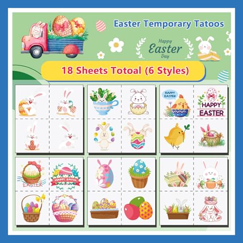 【Package Includes】: You will get 18 sheets of Easter temporary tattoos in different designs, enough for you and your friends to enjoy the Easter party. The tattoos are also suitable for Easter bunny coloring pages, which can help kids develop their creativity and imagination.