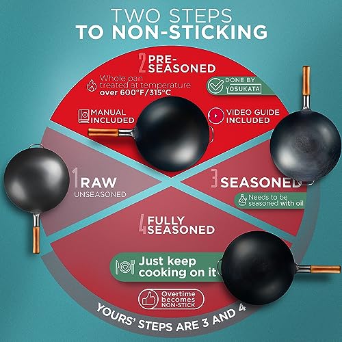 Specification: YOSUKATA Carbon Steel Wok Pan – 14 in Woks and Stir Fry Pans – Chinese Wok with Round Bottom Wok – Traditional Chinese Japanese Woks – Black Steel Wok
