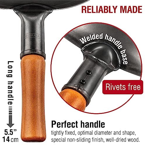 YOSUKATA Carbon Steel Wok Pan – 14 in Woks and Stir Fry Pans – Chinese Wok with Round Bottom Wok – Traditional Chinese Japanese Woks – Black Steel Wok