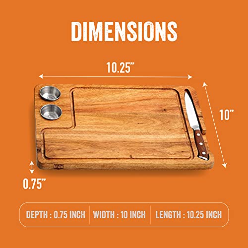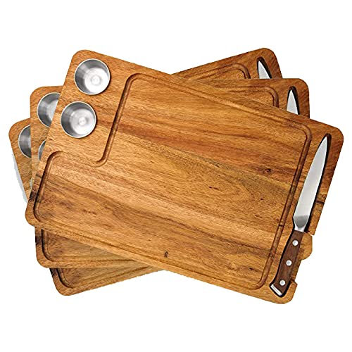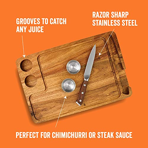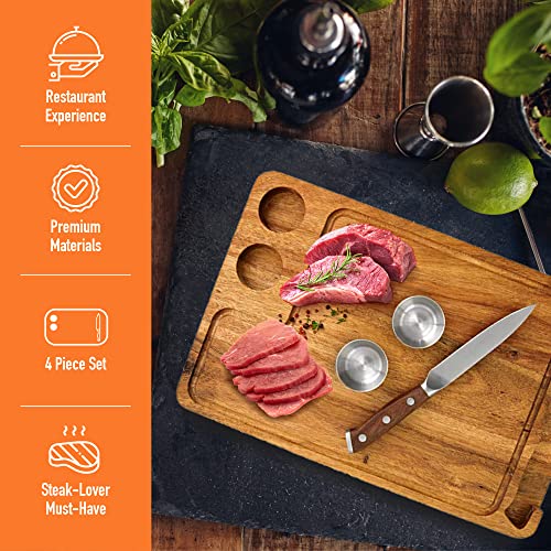 Yukon Glory Steak Board for Serving Steak, Meat, and Poultry in Style, Premium Acacia Wood, Includes Sauce Cups and Steak Knife, 3 Pack