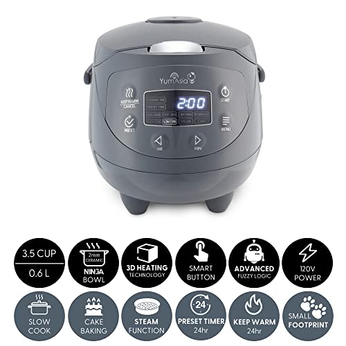 IDEAL FOR SMALL KITCHENS INDIVIDUALS OR COUPLES BY ‘YUM ASIA’ THE RICE COOKER EXPERTS – 3.5 cup capacity of uncooked rice (1-3 people), 0.63 litres, 120V, 60Hz with detachable US power cord