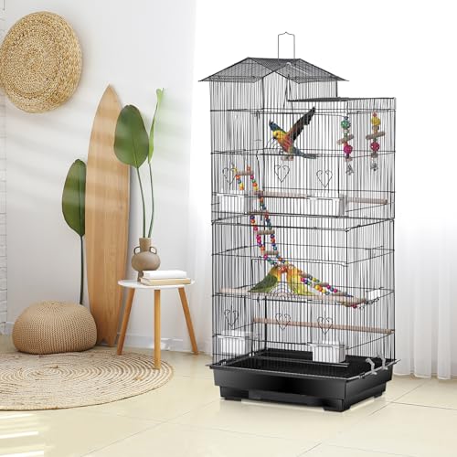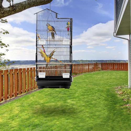 Specification: ZENY 39-inch Roof Top Large Flight Parrot Bird Cage for Small Quaker Cockatiel Canary Sun Parakeet Green Cheek Finch Budgie Lovebirds Wrought Iron Pet Bird Cage w/Toys