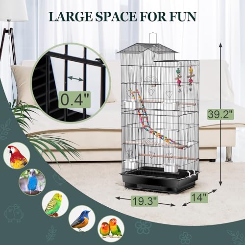 ZENY 39-inch Roof Top Large Flight Parrot Bird Cage for Small Quaker Cockatiel Canary Sun Parakeet Green Cheek Finch Budgie Lovebirds Wrought Iron Pet Bird Cage w/Toys